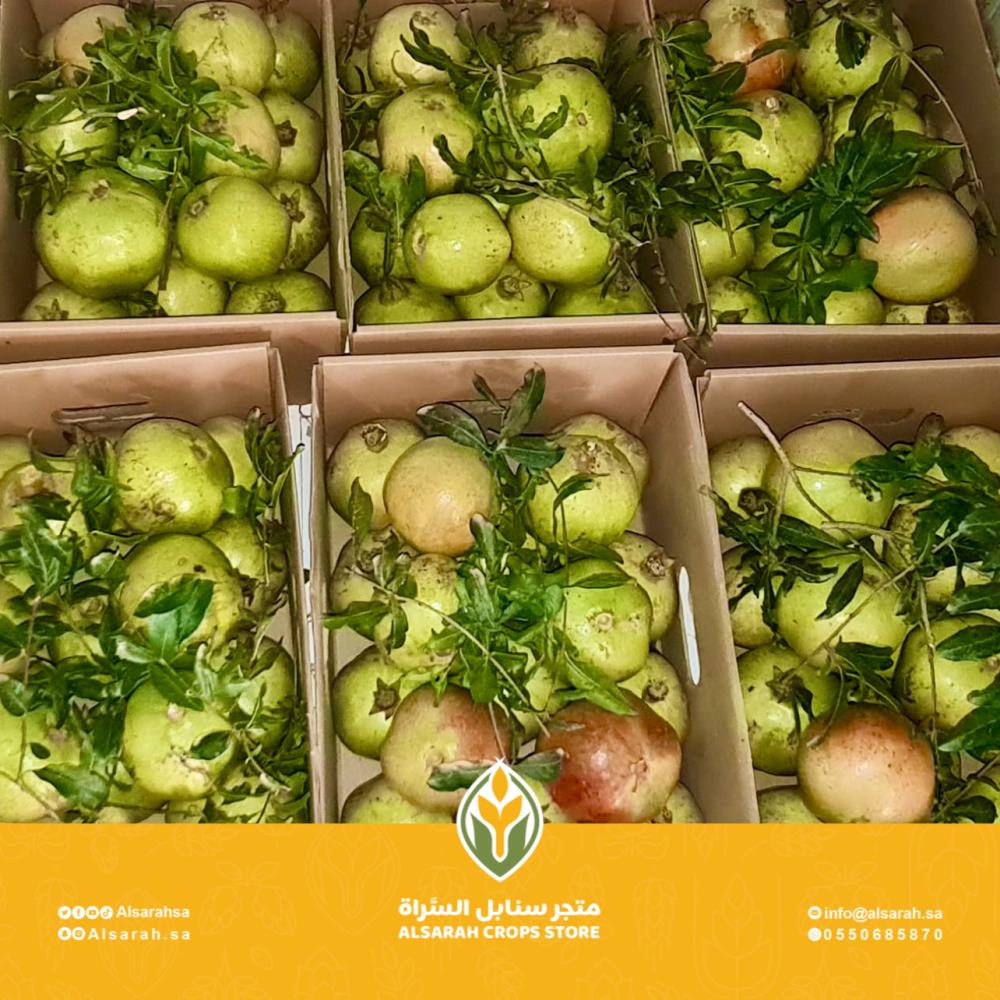 تعتبر فاكهة الرمان من الفواكه الصيفية اللذيذة التي تتميز بها منطقة الباحة , حيث تضم المنطقة ما يقارب 200 ألف شجرة تنتج مايقارب 30 ألف طن سنوياً من الرمان المعروف بلون حباته القرمزية الجاذبة عبر 1000 مزرعة ، وذلك حسب الإحصائية التقريبية لجمعية الرمان التعاونية بالباحة . ومن أشهر القرى المنتجة لفاكهة الرمان بالمنطقة هي قرية " بيدة " حيث سمي الرمان نسبة لها ويعتبر إنتاج الرمان بها من أفضل وأجود أصناف الرمان ، وذلك لما حباها الله من أرض زراعية خصبة ، ووفرة المياه الجوفية , ويعتبر إنتاجها من الرمان هو الأشهر بفضل حلاوته التي لا توصف ، ويبدأ جني ثمار الرمان من المزارع في بداية شهر سبتمبر ويستمر لمدة ثلاثة أشهر( نحن نسعى لقطف حبات الرمان الناضجة ولكن لانعلم يقيناً بنضوجها التام من الداخل ) ( الوزن الصافي : 6000 جرام )حجم الثمرة : كبيرة ومتوسطة الحجم
